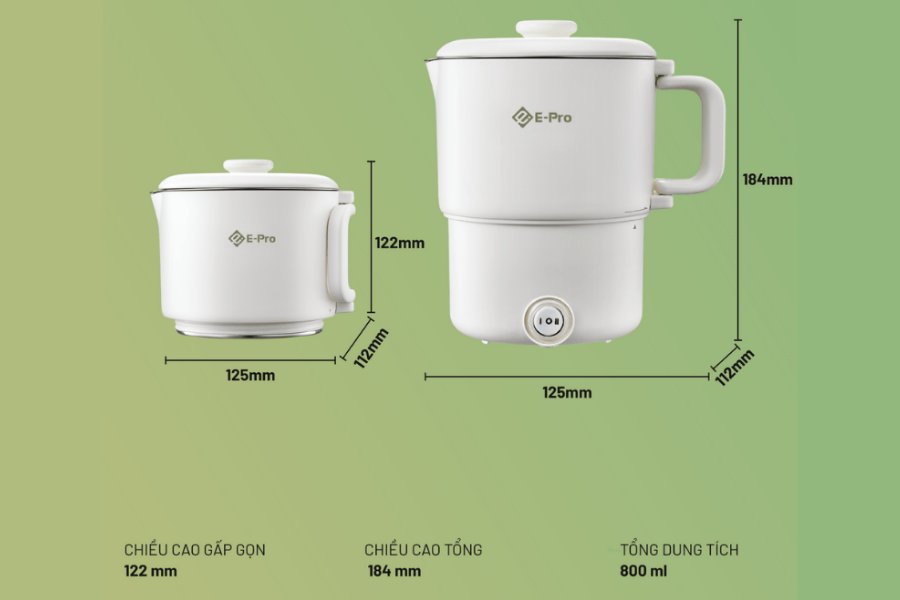 | Tên sản phẩm | Ấm siêu tốc gấp gọn E-Pro VEP-EKT-SS02(ZDP) |