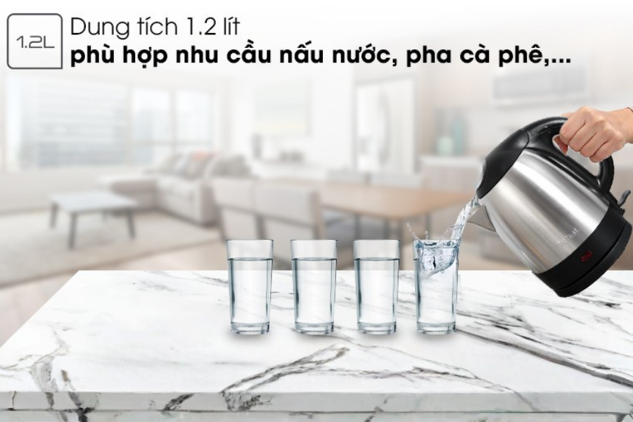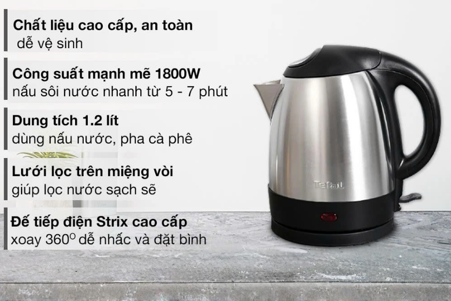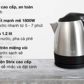 • Thân ấm đun nước cóđộ bền cao, an toàn sức khỏe, chống han rỉ; chắc khỏe, thuận tiện lau chùi