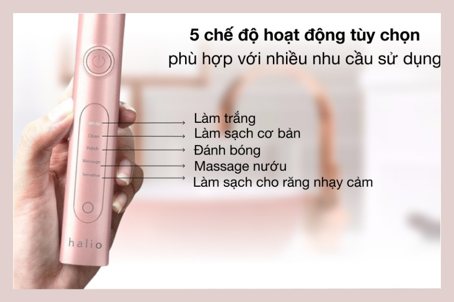 - Bàn chải điện Halio Sonic Whitening Toothbrush PRO Rose Gold: tông màu sang trọng, tinh tế, phù hợp với người yêu thích phong cách cao cấp