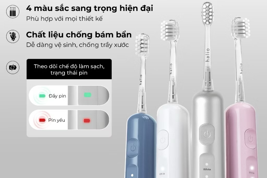 - Bàn chải điện Halio Wave Sonic Electric Toothbrush: Nhiều chế độ chải linh hoạt