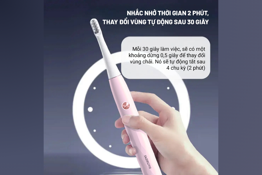 • Công nghệ sóng âm: Rung 20.000 lần/phút, giúp sạch mảng bám hiệu quả hơn bàn chải thường.