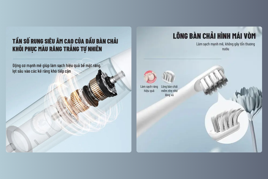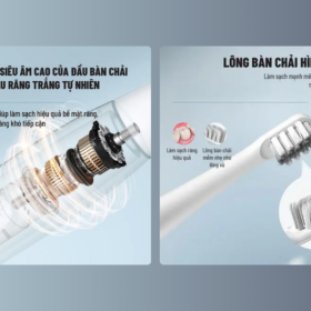 - Thiết kế bền bỉ: Chống nước chuẩn IPX7, lông bàn chải DuPont mềm mại bảo vệ nướu.