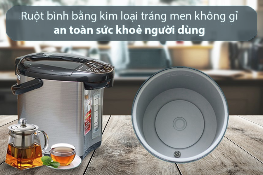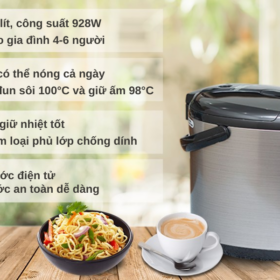 Nắp bình đóng kín giúp hạn chế thất thoát nhiệt, góp phần tăng hiệu quả giữ nóng và giảm điện năng tiêu thụ trong quá trình sử dụng liên tục.