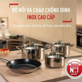 • Bộ sản phẩm gồm 4 sản phẩm: Chảo rán 28cm, nồi có nắp 16cm, nồi có nắp 20cm, nồi có nắp 24cm