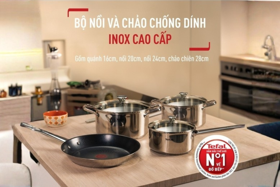 Một số đặc điểm nổi bật của Bộ nồi chảo inox Cook Eat 16/20/24/28 (B922S784):