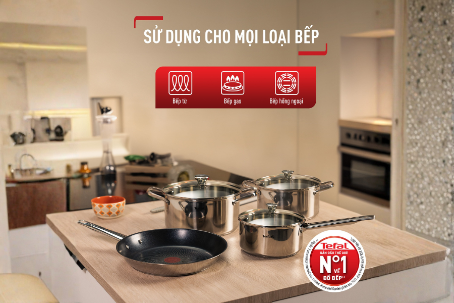 • Đế bộ nồi chảo vạn năng tương thích với mọi loại bếp