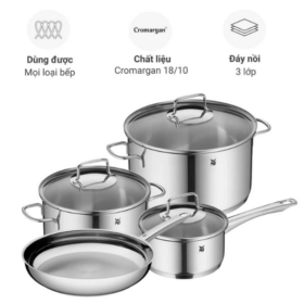 Trong mỗi gian bếp hiện đại, một bộ nồi chất lượng không chỉ giúp bạn chế biến những bữa ăn thơm ngon mà còn thể hiện phong cách sống tinh tế của gia đình. Bộ nồi inox 4 món WMF Astoria – 0780546040 là lựa chọn lý tưởng cho những ai muốn sở hữu bộ nồi bền bỉ, an toàn với sức khỏe và hiệu suất nấu nướng tối ưu. Với thiết kế sang trọng, các kích thước nồi linh hoạt và chất liệu inox cao cấp, Bộ nồi inox 4 món WMF đáp ứng đa dạng nhu cầu nội trợ từ đun nước, nấu canh đến kho, hầm. Trong bài viết này, chúng ta sẽ cùng nhau khám phá chi tiết giúp bạn hiểu rõ vì sao sản phẩm này được nhiều gia đình ưu tiên lựa chọn tại Điện máy Tín Phong.