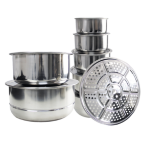 | Bộ gồm | 7 nồi inox + 1 vỉ hấp |