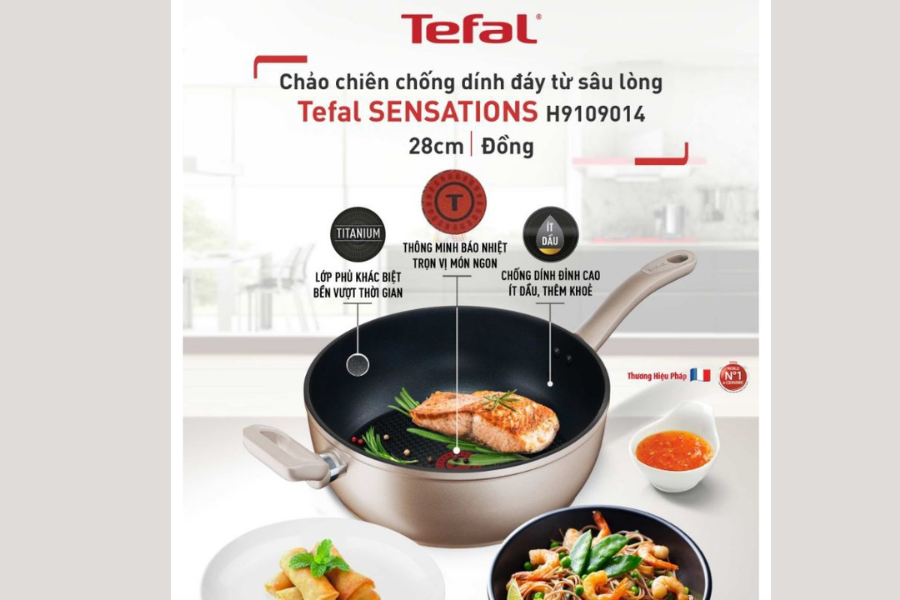 Một số đặc điểm nổi bật của Chảo chiên sâu lòng Tefal Sensations 28cm (H9109014):