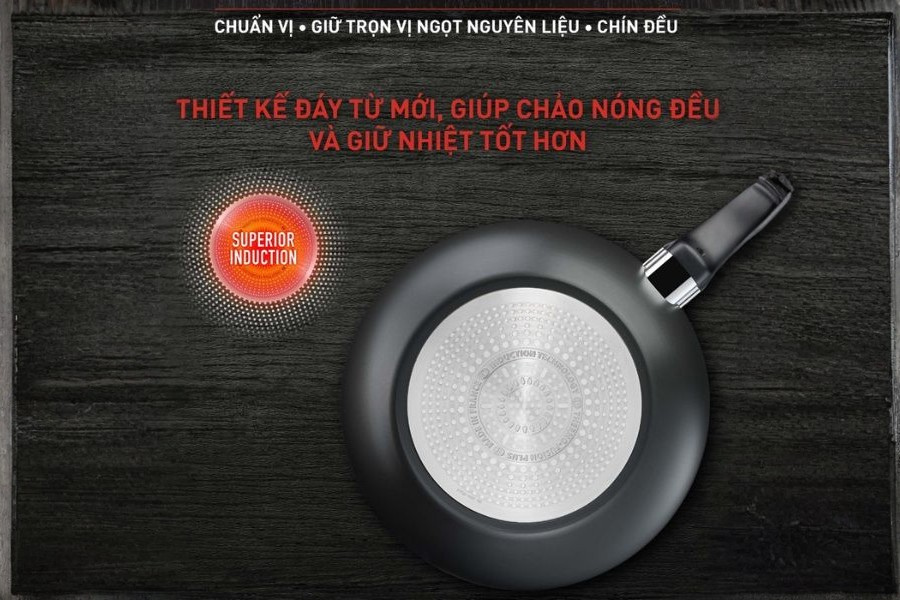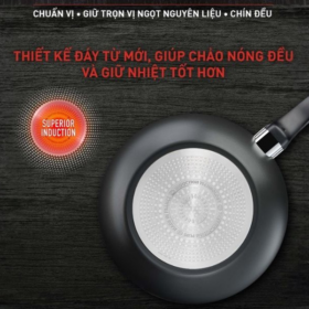 Hệ thống đáy từ của Chảo chiên sâu lồng Tefal Unlimited 28cm (G2551902) được thiết kế theo cấu trúc đặc biệt giúp gia tăng diện tích tiếp xúc với mặt bếp, từ đó truyền tải nhiệt lượng cực nhanh. Khác với các loại chảo đáy mỏng dễ bị lồi lõm khi gặp nhiệt độ cao, đáy chảo G2551902 có độ phẳng tuyệt đối và khả năng chống biến dạng xuất sắc. Công nghệ Thermo-Fusion Integral cho phép dòng nhiệt luân chuyển đều khắp bề mặt chảo, từ tâm ra đến tận rìa thành chảo, giúp thực phẩm chín đều tại mọi vị trí. Khi sử dụng trên bếp từ, Chảo chiên sâu lồng Tefal Unlimited 28cm (G2551902) cho hiệu suất bắt từ cực nhạy, giúp rút ngắn thời gian nấu nướng và tiết kiệm điện năng một cách đáng kể. Đây là yếu tố then chốt giúp chiếc chảo này trở thành sự lựa chọn hàng đầu cho những người nội trợ hiện đại mong muốn sự nhanh chóng và hiệu quả.