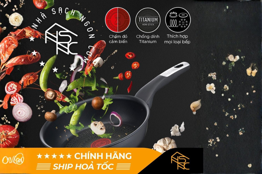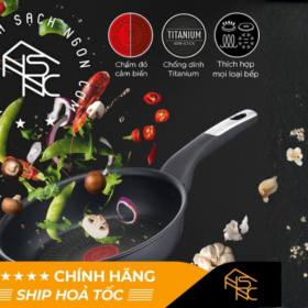 • Lớp phủ Titanium nonstick mang lại khả năng chống dính tuyệt vời và độ bền vượt trội, có thể sử dụng không hoặc ít dầu khi nấu ăn.