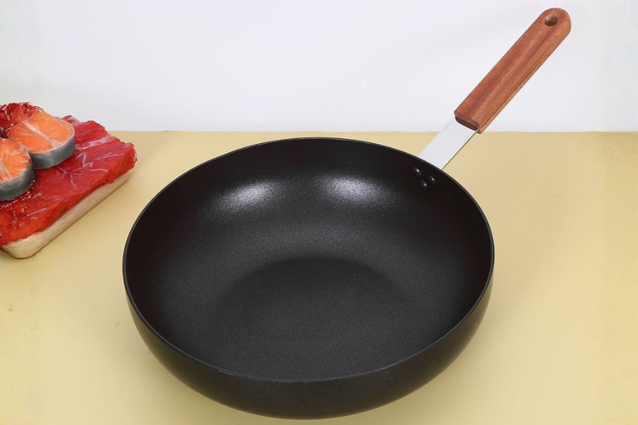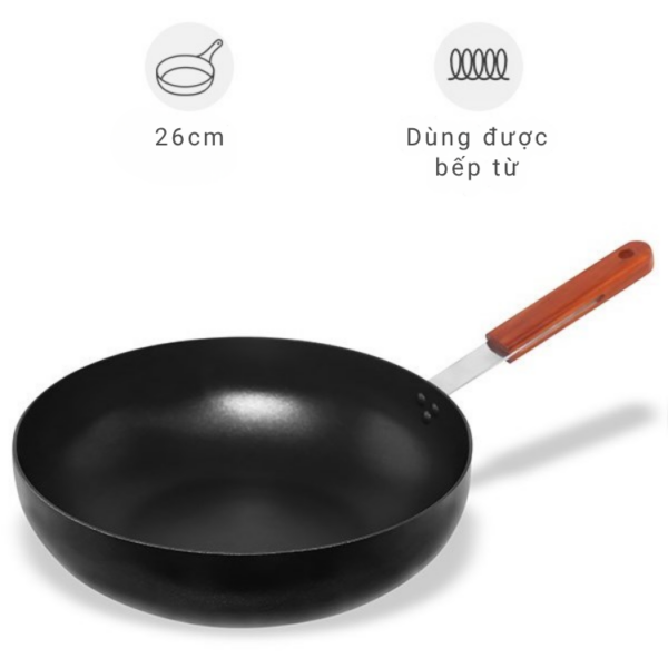 Điểm đáng chú ý là phần thân chảo được thiết kế với độ dày hợp lý, giúp tăng khả năng giữ nhiệt và hạn chế tình trạng cong vênh sau thời gian dài sử dụng. Điều này đặc biệt quan trọng đối với những người thường xuyên chế biến các món chiên, xào cần nhiệt độ cao và ổn định.