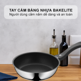 - Lớp chống dính an toàn: Lớp chống dính hiệu suất cao (PTFE hoặc Ceramic) giúp chiên rán ít dầu mỡ mà thức ăn không bị dính, không chứa PFOA/PTFE (đối với lớp Ceramic).