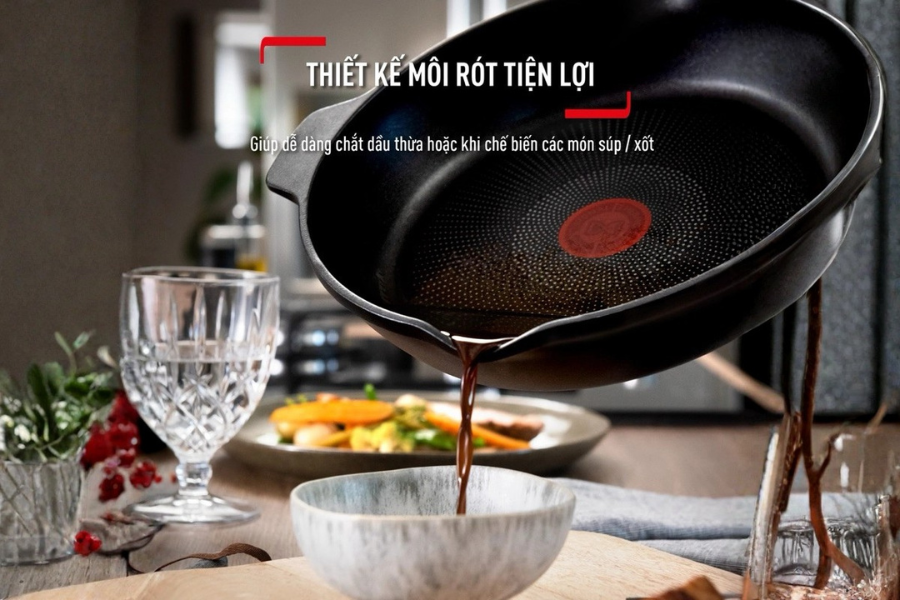 - Đường kính 28 cm có miệng rót tiện đổ thức ăn ra tô, dĩa