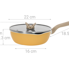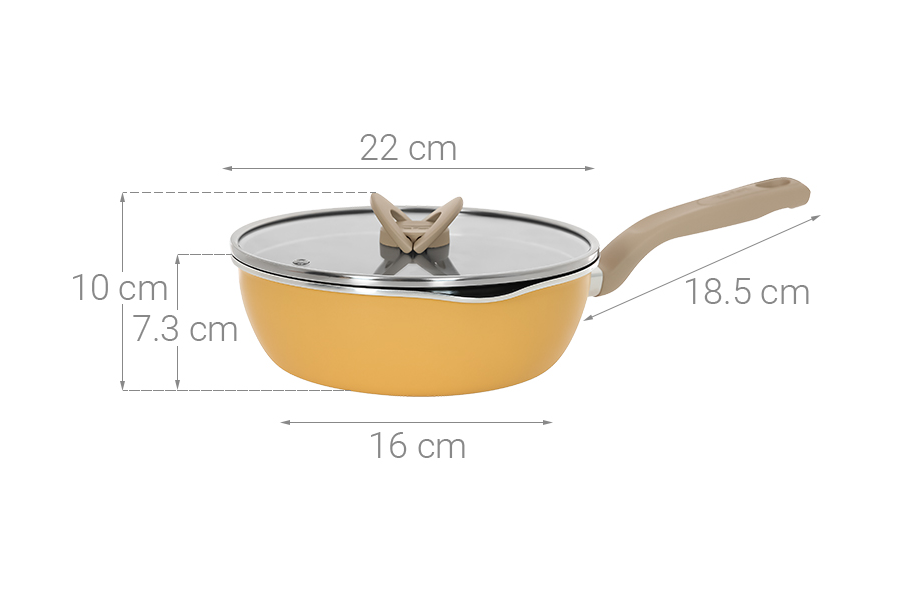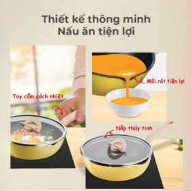 • Thiết kế chảo chống dính sâu lòng, đường kính 22 cm có thể chiên ngập dầu 2 khoanh cá nhỏ cùng lúc.