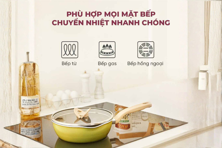 • Trang bị nắp kính trong suốt sử dụng tiện lợi cùng công nghệ THERMO-SIGNAL báo nhiệt thông minh dễ dàng quan sát nhiệt độ thích hợp để nấu ăn.