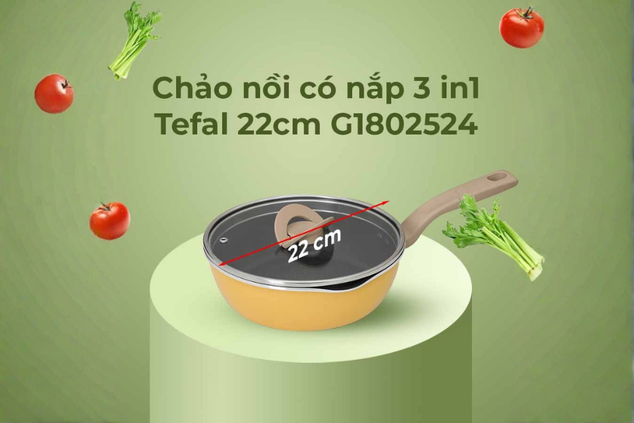 Chảo nồi có nắp Tefal đa năng 3 trong 1 22cm G1802524