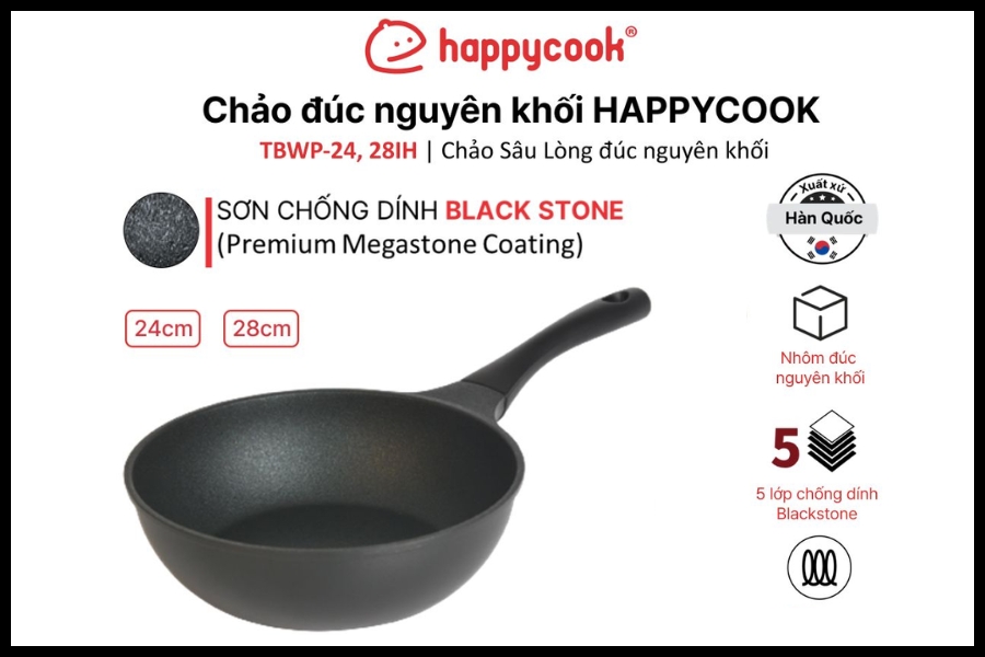 Các phiên bản như Chảo sâu đúc đáy từ Happycook All Black 24cm TBWP-24IH và Chảo sâu đúc đáy từ Happycook All Black 28cm TBWP-28IH mang đến sự linh hoạt, giúp người dùng dễ dàng lựa chọn theo nhu cầu sử dụng thực tế.