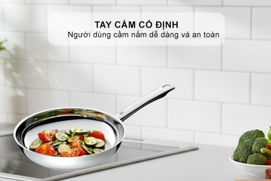 - Chất liệu cao cấp: Sử dụng độc quyền thép Cromargan® 18/10 của WMF, đảm bảo chảo bền bỉ, chống gỉ sét, chống trầy xước và kháng axit thực phẩm, đồng thời không mùi và không vị.