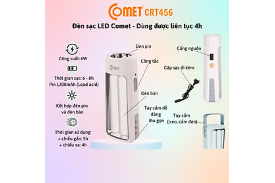 Một số đặc điểm nổi bật của Đèn pin sạc led Comet CRT456: