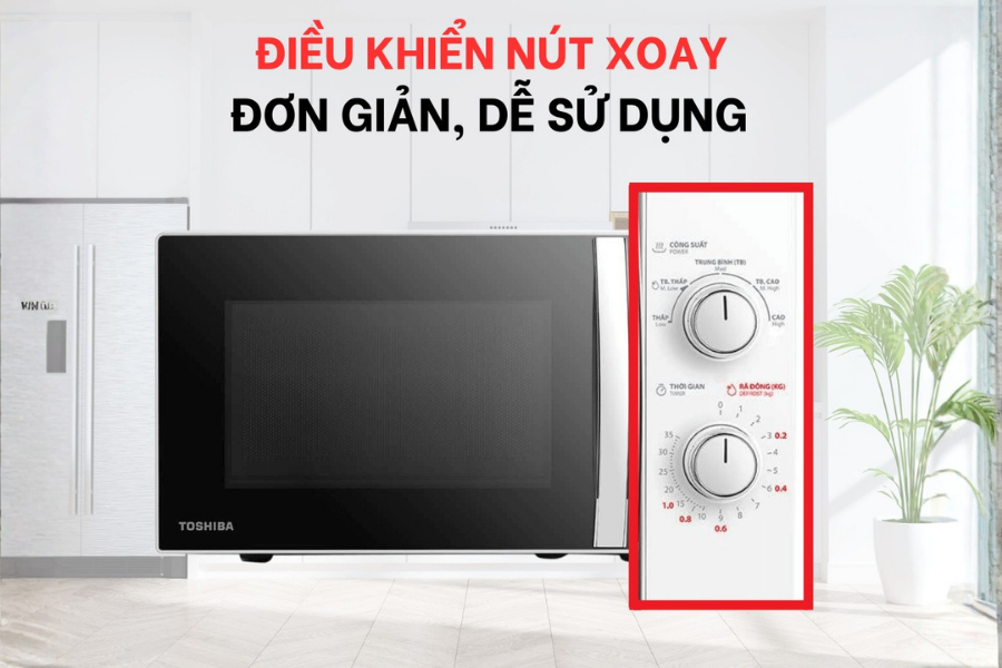 Lò vi sóng Toshiba MWP-MM20P(WH) được trang bị bảng điều khiển cơ với các núm xoay và nút chức năng dễ hiểu. Thiết kế trực quan giúp người dùng nhanh chóng lựa chọn chế độ nấu, thời gian và công suất phù hợp.