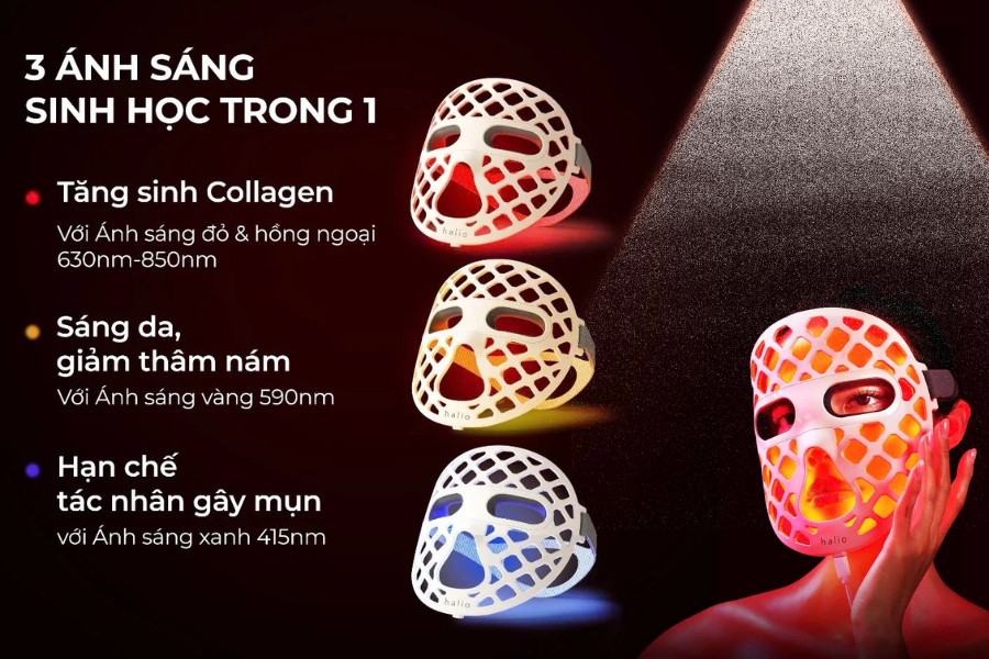 Mặt nạ ánh sáng sinh học Halio PureGlow Ultralite Silicone LED Face Mask kế thừa nguyên lý này, tích hợp hệ thống LED cường độ phù hợp để sử dụng tại nhà. Khác với laser, ánh sáng LED không gây tổn thương bề mặt da mà tác động nhẹ nhàng vào lớp biểu bì và trung bì tùy bước sóng.