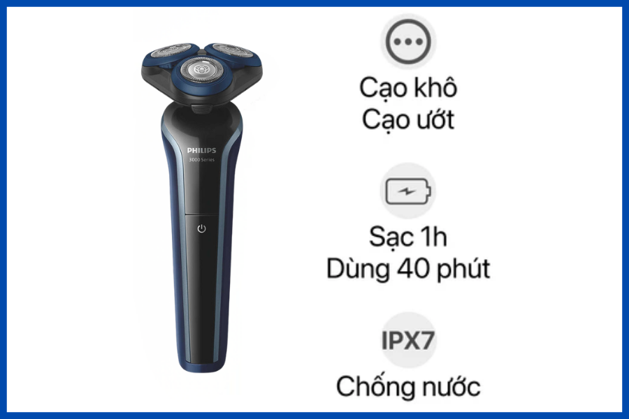 Máy cạo râu khô và ướt Philips S3608/10 là lựa chọn lý tưởng cho nam giới yêu cầu sự linh hoạt trong chăm sóc cá nhân hằng ngày. Với công nghệ SkinProtect, đầu cạo 5D Pivot & Flex, khả năng sử dụng khô và ướt cùng thời lượng pin ấn tượng, sản phẩm đáp ứng tốt nhu cầu cạo râu nhanh gọn nhưng vẫn êm ái. Hiện nay, Máy cạo râu khô và ướt Philips S3608/10 được phân phối chính hãng tại Điện máy Tín Phong với mức giá cạnh tranh và chính sách hậu mãi rõ ràng.