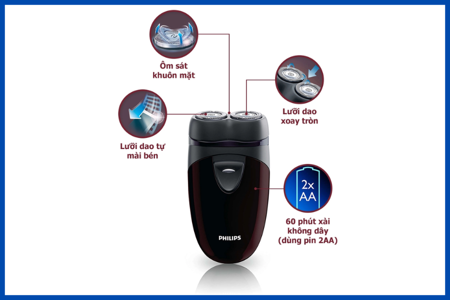 • Máy cạo râu Philips PQ206 với thiết kế máy nhỏ gọn, dễ dàng cầm nắm và thao tác