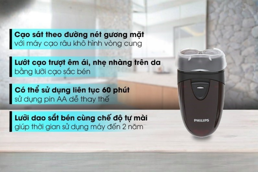 • Cạo râu không cần dùng dây tối đa 60 phút