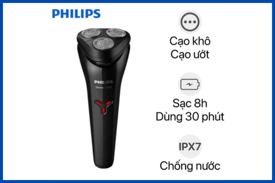 - Máy cạo râu Philips S1103/02 đa chức năng có thể cạo râu khô và cạo râu ướt rất tiện lợi