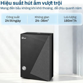 - Công suất hút ẩm mạnh mẽ lên đến 24L/ngày