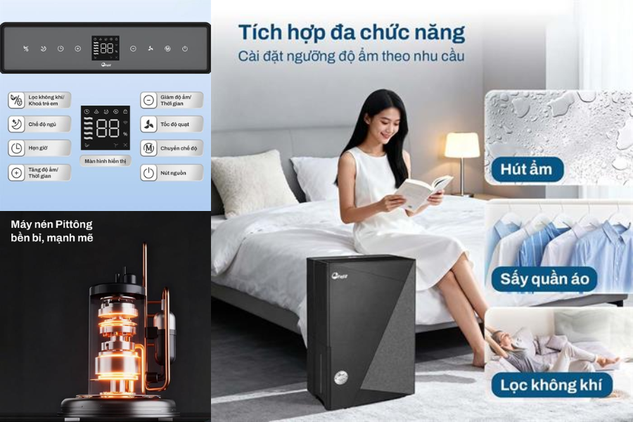 Chỉ sau một thời gian ngắn hoạt động, người dùng có thể cảm nhận được sự khác biệt: không khí trở nên khô ráo hơn, giảm hẳn cảm giác ẩm ướt, bí bách thường gặp trong những ngày thời tiết nồm. Sàn nhà ít bị đọng nước, quần áo cũng khô nhanh hơn và không còn mùi ẩm khó chịu.