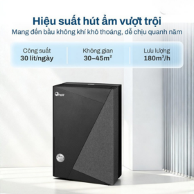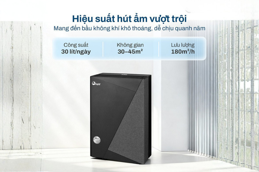 - Công suất 30 lít/ngày, phù hợp phòng 30–45m², độ ồn ≤ 43dB vận hành êm ái