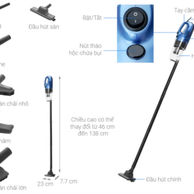 - Công suất 600W mạnh mẽ, làm sạch nhanh chóng