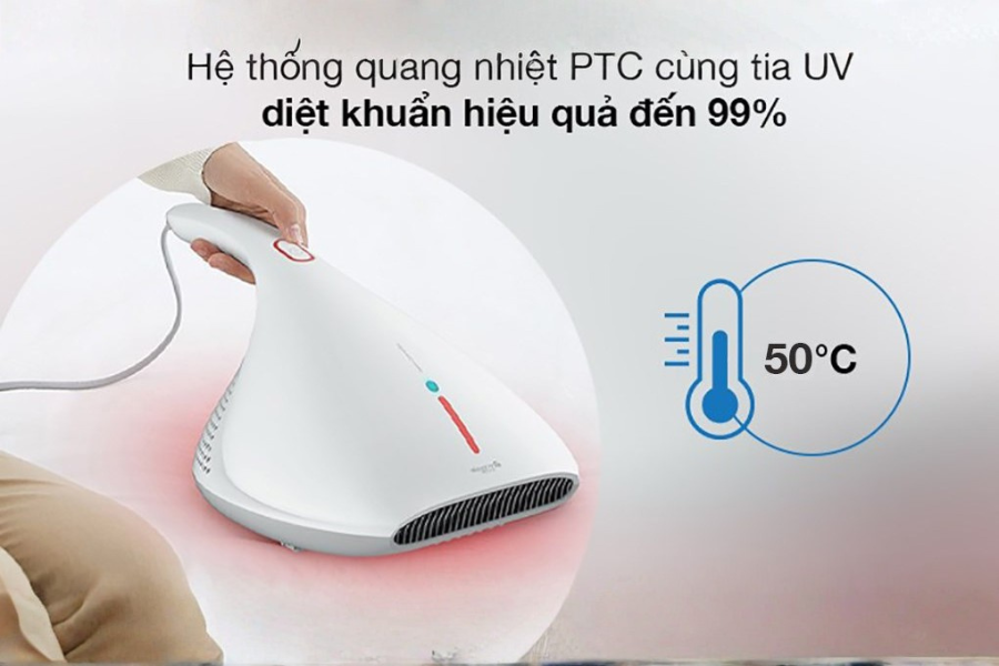 Ngoài việc làm sạch vật lý, Deerma CM800 SEA còn được trang bị tia UV giúp tiêu diệt vi khuẩn và nấm mốc. Đây là công nghệ thường thấy trong các thiết bị y tế và ngày càng được ứng dụng trong gia dụng. Tia UV có khả năng phá vỡ cấu trúc DNA của vi khuẩn, từ đó ngăn chặn sự phát triển của chúng. Khi sử dụng trên chăn ga gối đệm, hiệu quả khử khuẩn được thể hiện rõ rệt. Điều này đặc biệt quan trọng trong môi trường khí hậu ẩm như Việt Nam. Việc kết hợp giữa hút bụi và khử khuẩn giúp Máy hút bụi đệm giường Deerma CM800 SEA trở thành giải pháp toàn diện. Đây cũng là lý do sản phẩm được đánh giá cao trong phân khúc.