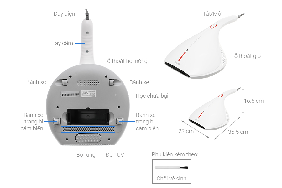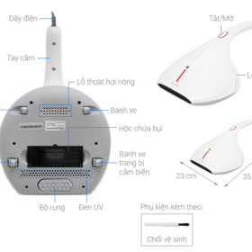 - Thiết kế cầm tay nhẹ, dễ dàng thao tác vệ sinh giường, sofa, chăn gối mà không mỏi tay.