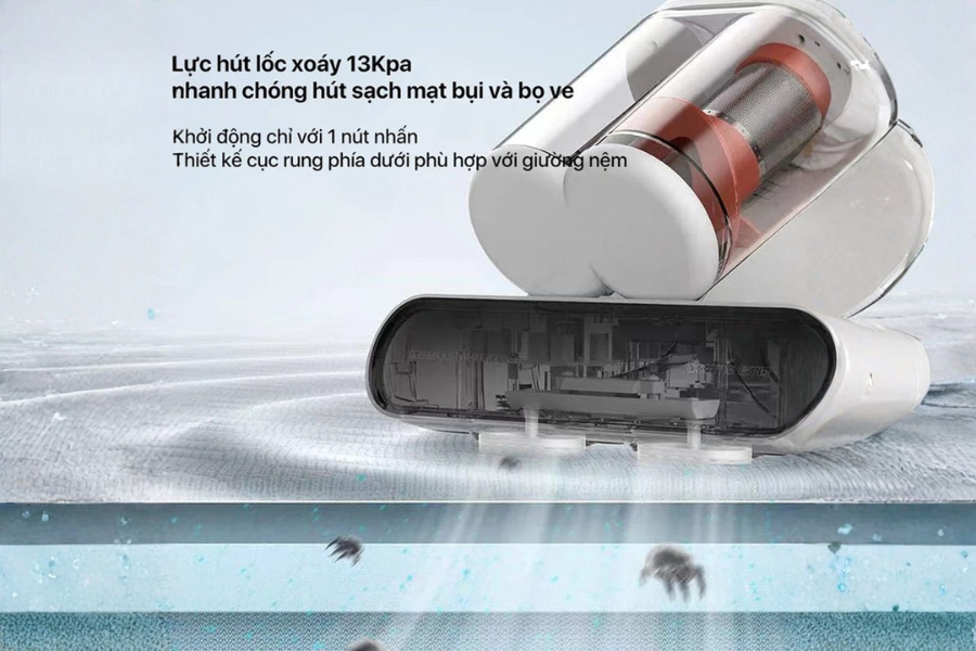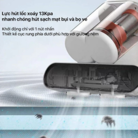 Một trong những điểm nổi bật của Máy hút bụi đệm giường Deerma CM980 trắng là công nghệ rung đập tần số cao. Công nghệ này giúp đánh bật bụi bẩn, mạt bụi và vi khuẩn bám sâu trong đệm mà mắt thường không thể nhìn thấy. Khi đầu hút tiếp xúc với bề mặt, các rung động sẽ làm lỏng cấu trúc bụi, giúp quá trình hút trở nên hiệu quả hơn. Điều này đặc biệt hữu ích đối với các gia đình có trẻ nhỏ hoặc người bị dị ứng. Việc loại bỏ các tác nhân gây hại từ đệm giường sẽ góp phần cải thiện chất lượng giấc ngủ. So với việc chỉ hút bề mặt, công nghệ này mang lại hiệu quả làm sạch sâu hơn nhiều lần. Ngoài ra, rung đập tần số cao còn giúp hạn chế tình trạng bụi bám lại sau khi hút. Đây là yếu tố quan trọng giúp duy trì sự sạch sẽ lâu dài cho đệm và các bề mặt vải khác. Nhờ vậy, người dùng không cần vệ sinh quá thường xuyên mà vẫn đảm bảo hiệu quả.