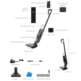 - Tích hợp hút bụi khô, hút nước và lau sàn trong một thiết b