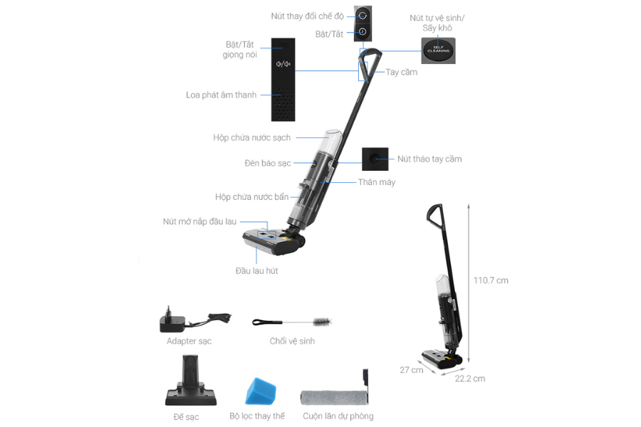 Bảng điều khiển được bố trí trực quan, giúp người dùng dễ dàng lựa chọn chế độ làm sạch phù hợp. Ngay cả những người lần đầu sử dụng máy hút bụi lau sàn cũng có thể nhanh chóng làm quen và thao tác thành thạo.