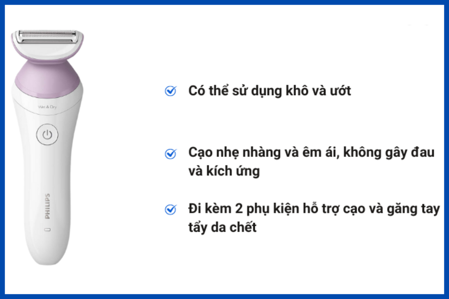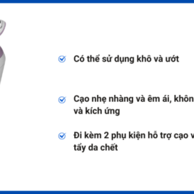 Sản phẩm thuộc dòng máy cạo lông thân thiện với làn da, thiết kế nhỏ gọn, dễ cầm nắm. Đây là lựa chọn phù hợp cho phụ nữ hiện đại mong muốn chăm sóc cơ thể tại nhà thay vì phụ thuộc vào dịch vụ bên ngoài.