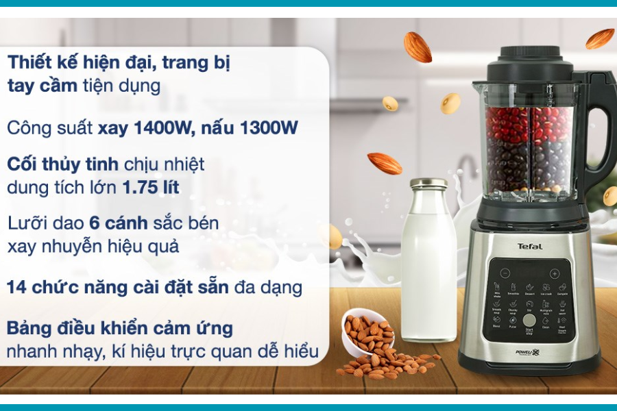 Một số đặc điểm nổi bật của Máy làm sữa hạt sinh tố Tefal BL83SD66 1400W: