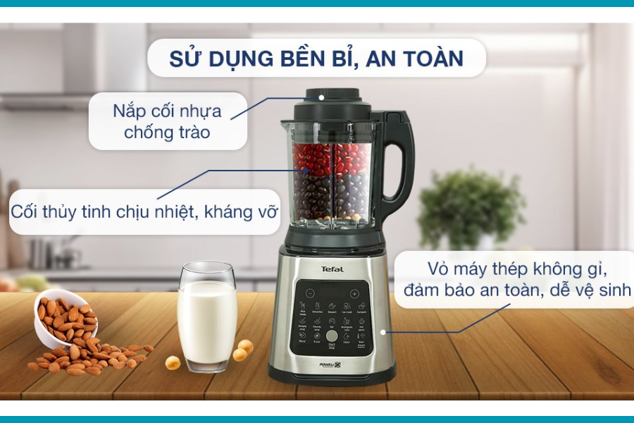 Máy làm sữa hạt sinh tố Tefal BL83SD66 1400W được trang bị các cơ chế an toàn cần thiết nhằm đảm bảo quá trình sử dụng diễn ra ổn định và hạn chế rủi ro. Máy chỉ hoạt động khi cối và nắp được lắp đúng vị trí, giúp ngăn chặn tình trạng tràn nguyên liệu hoặc va chạm không mong muốn trong lúc xay. Ngoài ra, tính năng tự ngắt khi quá nhiệt góp phần bảo vệ động cơ, đặc biệt hữu ích khi máy phải xử lý các mẻ nguyên liệu lớn hoặc hoạt động liên tục.