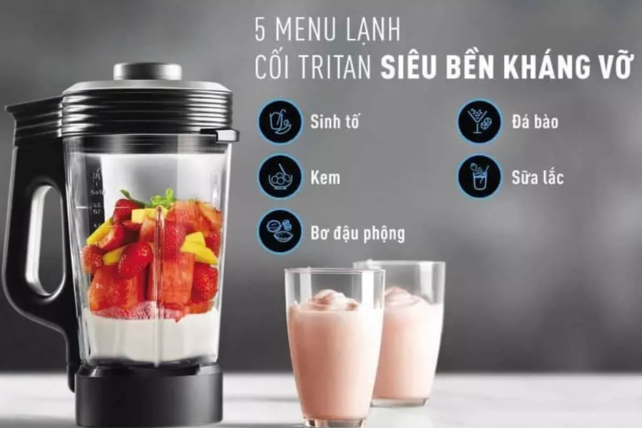 Ngoài sữa hạt và sinh tố, máy còn phù hợp để chế biến các món quen thuộc trong bữa ăn gia đình Việt như xay nguyên liệu nấu cháo, soup hoặc các loại nước sốt. Khả năng linh hoạt này giúp máy được sử dụng thường xuyên, thay vì chỉ dùng theo nhu cầu nhất thời. Đây là yếu tố quan trọng giúp thiết bị phát huy đúng giá trị trong thực tế sử dụng lâu dài.