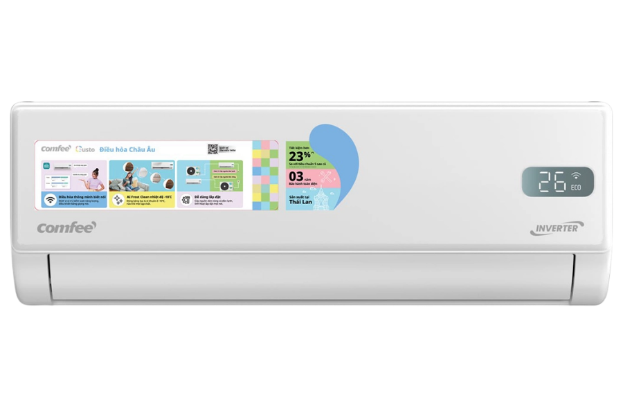 Công nghệ Inverter giúp máy hoạt động mượt mà, hạn chế rung lắc và tiếng ồn. Nhờ đó, Máy lạnh Comfee mang lại không gian yên tĩnh, phù hợp cho phòng ngủ, phòng làm việc hoặc khu vực sinh hoạt chung.