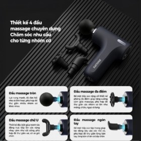 - Đi kèm 4 đầu massage bằng nhựa ABS và mút xốp, thích hợp cho nhiều vùng cơ trên cơ thể.