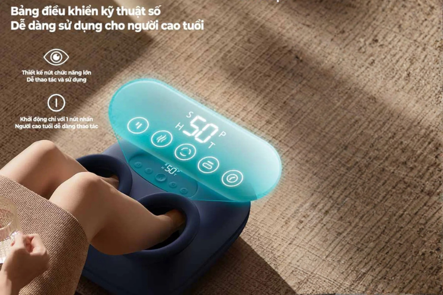 Bên cạnh đó, bảng điều khiển của máy được thiết kế đơn giản, dễ hiểu với các nút chức năng rõ ràng. Người dùng có thể dễ dàng lựa chọn chế độ phù hợp mà không cần phải mất thời gian tìm hiểu quá nhiều. Điều này đặc biệt phù hợp với người lớn tuổi hoặc những người không quen sử dụng thiết bị điện tử phức tạp. Một điểm cộng khác là độ ồn của máy được kiểm soát tốt, giúp quá trình sử dụng diễn ra êm ái và không gây khó chịu. Người dùng hoàn toàn có thể vừa massage vừa nghỉ ngơi hoặc làm việc nhẹ nhàng mà không bị ảnh hưởng bởi tiếng ồn.