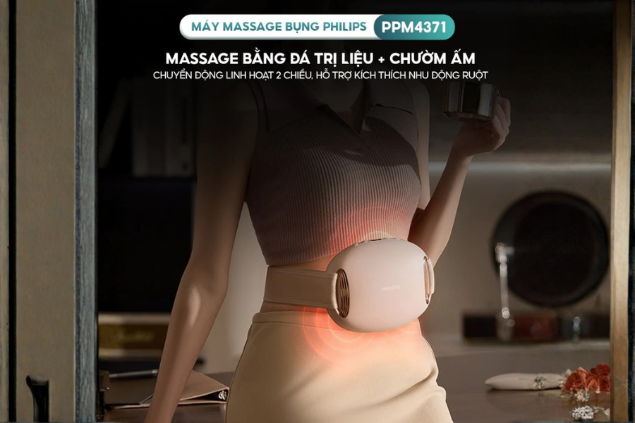 Việc áp dụng nhiệt độ ổn định lên vùng bụng từ Máy massage eo Philips PPM4371 còn có tác dụng tích cực đến hệ tiêu hóa và quá trình chuyển hóa năng lượng. Nhiệt lượng hồng ngoại giúp kích thích nhu động ruột, hỗ trợ quá trình tiêu hóa diễn ra trơn tru hơn và giảm tình trạng đầy hơi, chướng bụng sau khi ăn. Bên cạnh đó, khi vùng bụng được sưởi ấm, các mô mỡ dưới da cũng được tác động, hỗ trợ quá trình làm mềm và giải phóng mỡ thừa nếu kết hợp cùng chế độ ăn uống hợp lý. Đây là lý do tại sao nhiều người dùng chọn sử dụng máy như một phương pháp hỗ trợ định hình vòng eo và duy trì vóc dáng thon gọn. Philips đã nghiên cứu rất kỹ để nhiệt lượng tỏa ra đồng đều trên diện tích rộng, đảm bảo toàn bộ vùng eo đều nhận được hơi ấm trị liệu cần thiết.