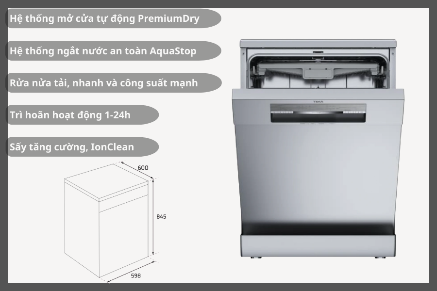1. Tổng quan về Máy rửa chén Teka DFS 76850 SS (14 bộ)