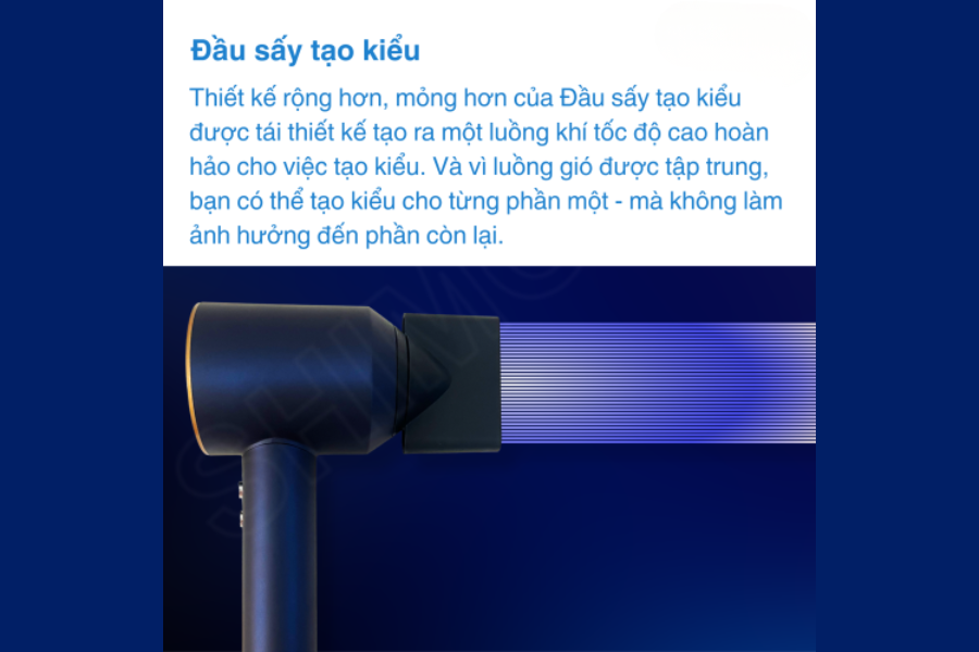 - 1 đầu sấy khí tập trung để tạo kiểu kèm một giá đỡ tiện lợi cho bạn khi dùng
