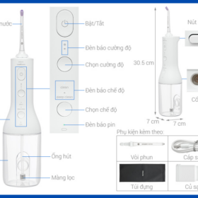 - Máy tăm nước thiết kế nhỏ gọn, chăm sóc răng miệng toàn diện chuẩn nha khoa.